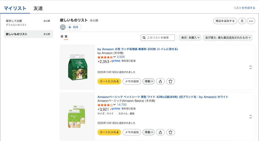 欲しいペットフードやケア用品をリストに入れておけば、セール開始時に自動で値下げ通知が届きます。