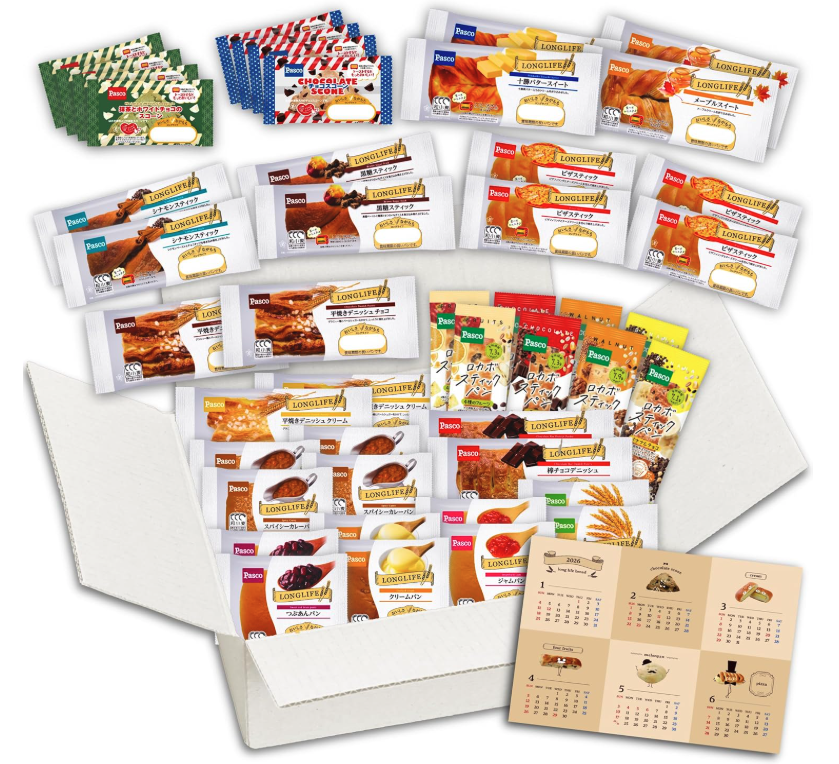 - 福袋 2026 食品 パン 詰め合わせ 19種46個 ロングライフパン Pasco 長期保存 惣菜パン 菓子パン 賞味期限50日 非常食