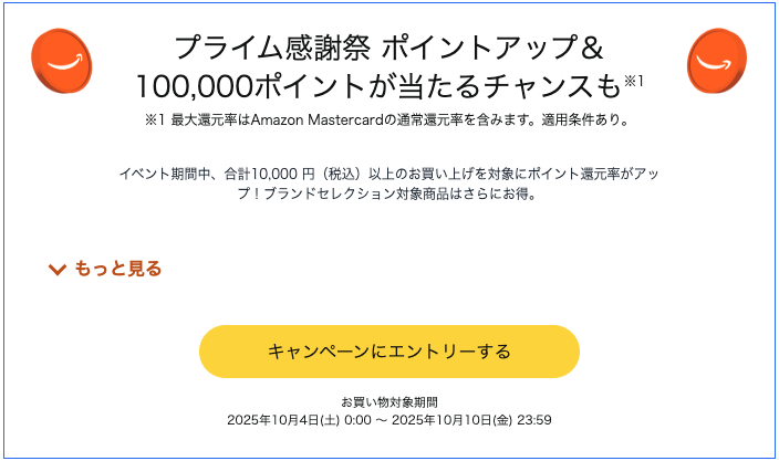 参加条件 | 全ユーザー参加可(プライム会員でなくてもOK) | プライム会員限定 | プライム会員限定 |