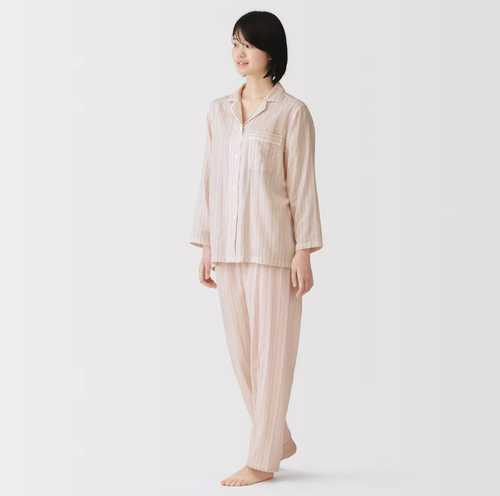 商品    婦人 脇に縫い目のない 二重ガーゼ長袖パジャマ