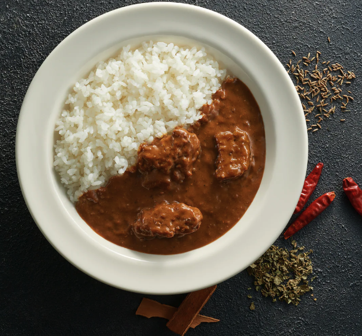 商品説明  牛肉の旨みと炒め玉ねぎの甘みを生かし、数種のスパイスで奥行きのある辛さに仕あげました。満足感がある大盛りカレーです。