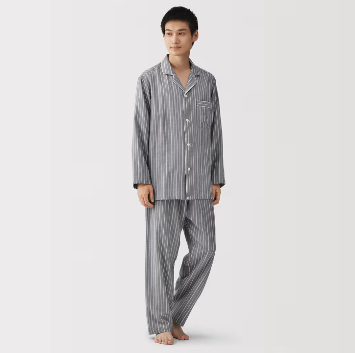 商品    紳士 脇に縫い目のない 二重ガーゼ長袖パジャマ