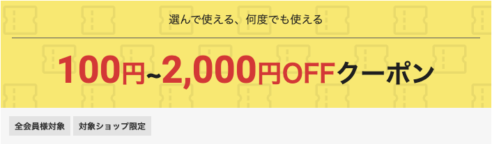 100円〜2,000円OFFクーポンは早めに確認しましょう。