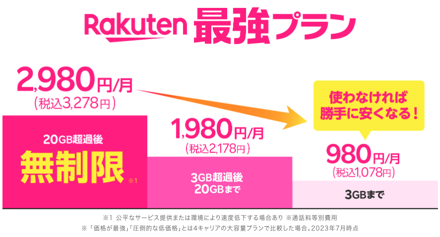 また、楽天は他の大手キャリアとは違い、分かりやすい「最強プラン」のみ。
