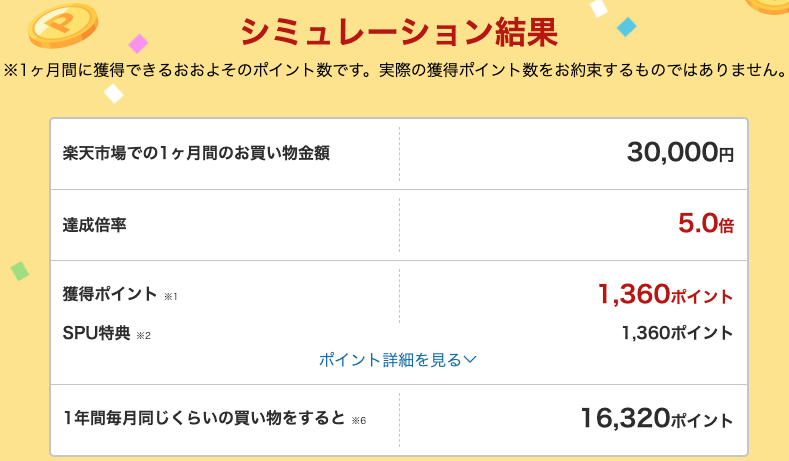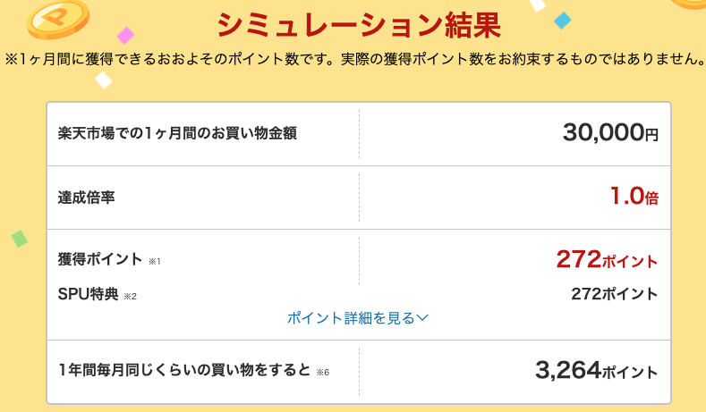 自分のSPUの還元ポイントがいくらか気になる人は、かんたんポイントシミュレーションから簡単に計算することができます