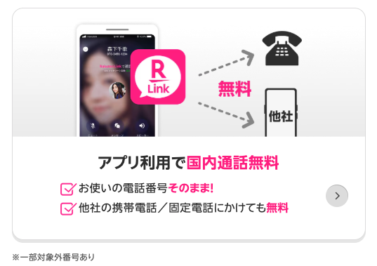 楽天モバイル契約者は、「Rakuten Link」アプリをダウンロードすることで、国内通話を無料にすることができます。