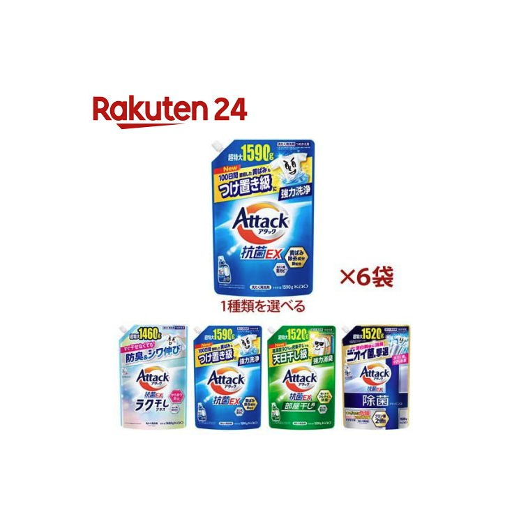 【1種類を選べる】アタック 抗菌EX 洗濯洗剤 詰替 超特大サイズ 梱販売用(6袋入)【アタック】
