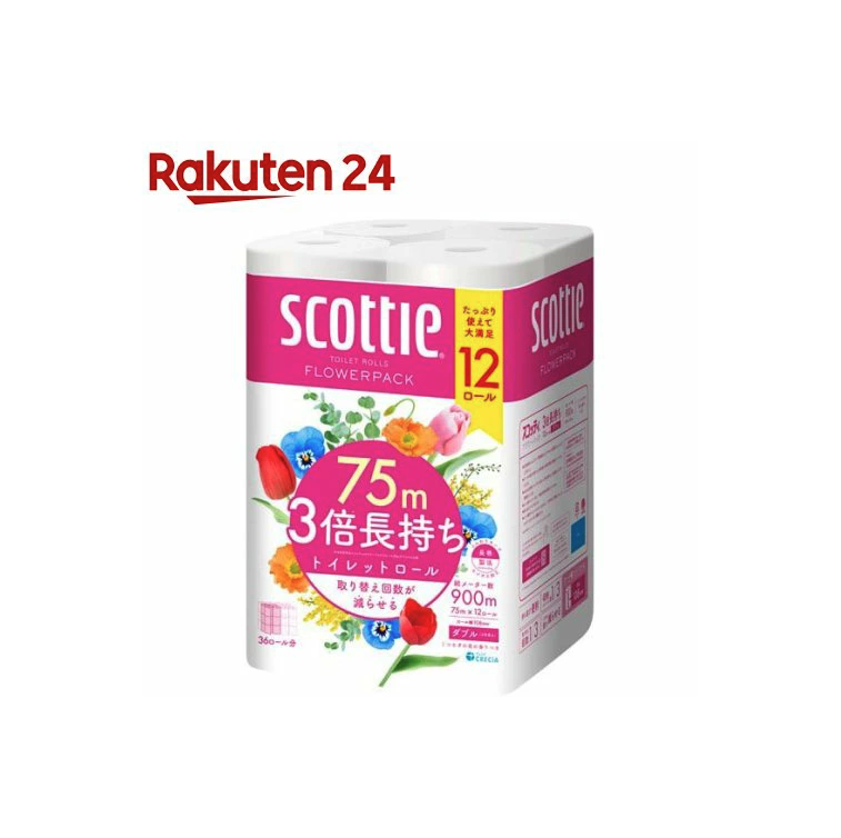 スコッティ フラワーパック 3倍長持ち トイレットペーパー ダブル(75m×12ロール)【スコッティ(SCOTTIE)】