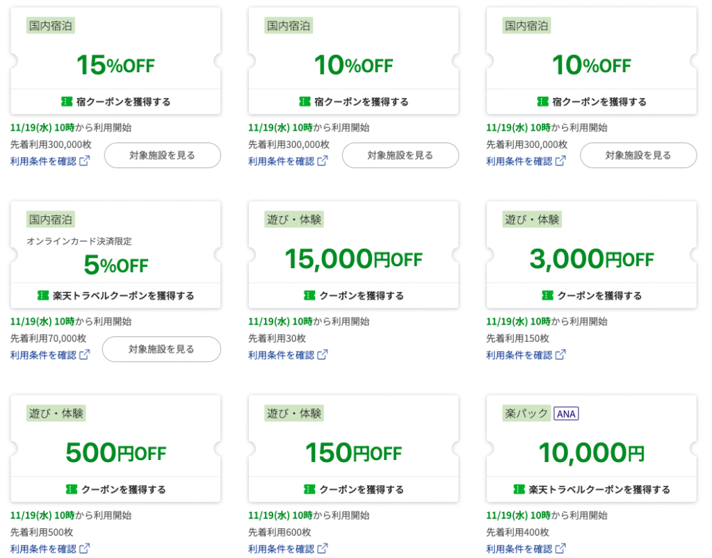 また、この他にも配布しているクーポンがあるため、楽天トラベル RaCoupon(ラ・クーポン)で確認してみてください