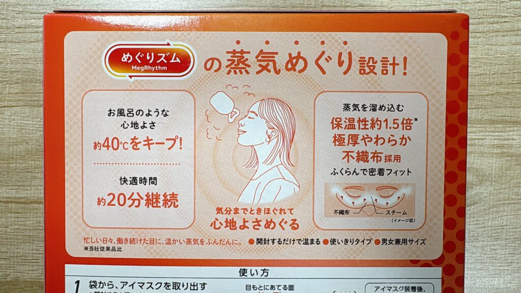 蒸気量が以前のタイプよりも113%にアップしたということで、約40℃の温かい心地よさが疲れた目をじんわりとほぐしてくれます。